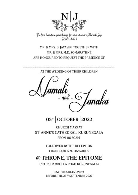 ජීවිතයේ ලස්සනම දවසට ලස්සන ඇරයුම්පතක් මුද්‍රණය කරගැනීමට, බෝඩ් වර්ග දෙකකින් සහ ප්‍රමාණ දෙකකින් ලබාගත හැක.